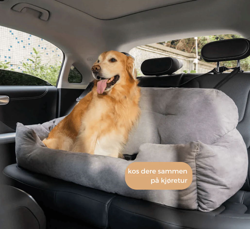 Vår Pelsbarn Luksuriøse Bilseng for Store Hunder inklduerer fullt utsyn, bedre luftsirkulasjon og en myk pute hunden kan stå, sitte eller ligge på.
