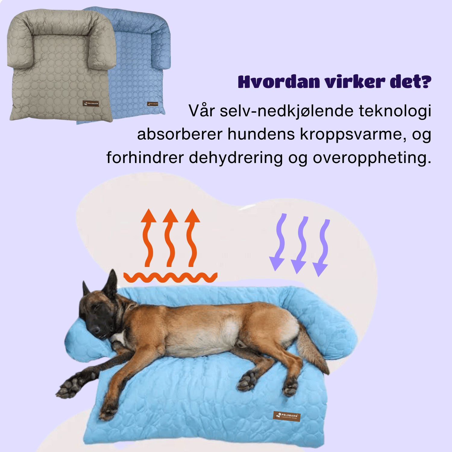 Pelsbarn Nedkjølende Hundeseng er laget av "Ice Silk" materiale som regulerer dyrets kroppstemperatur. Man må hverken fryse eller lade den!