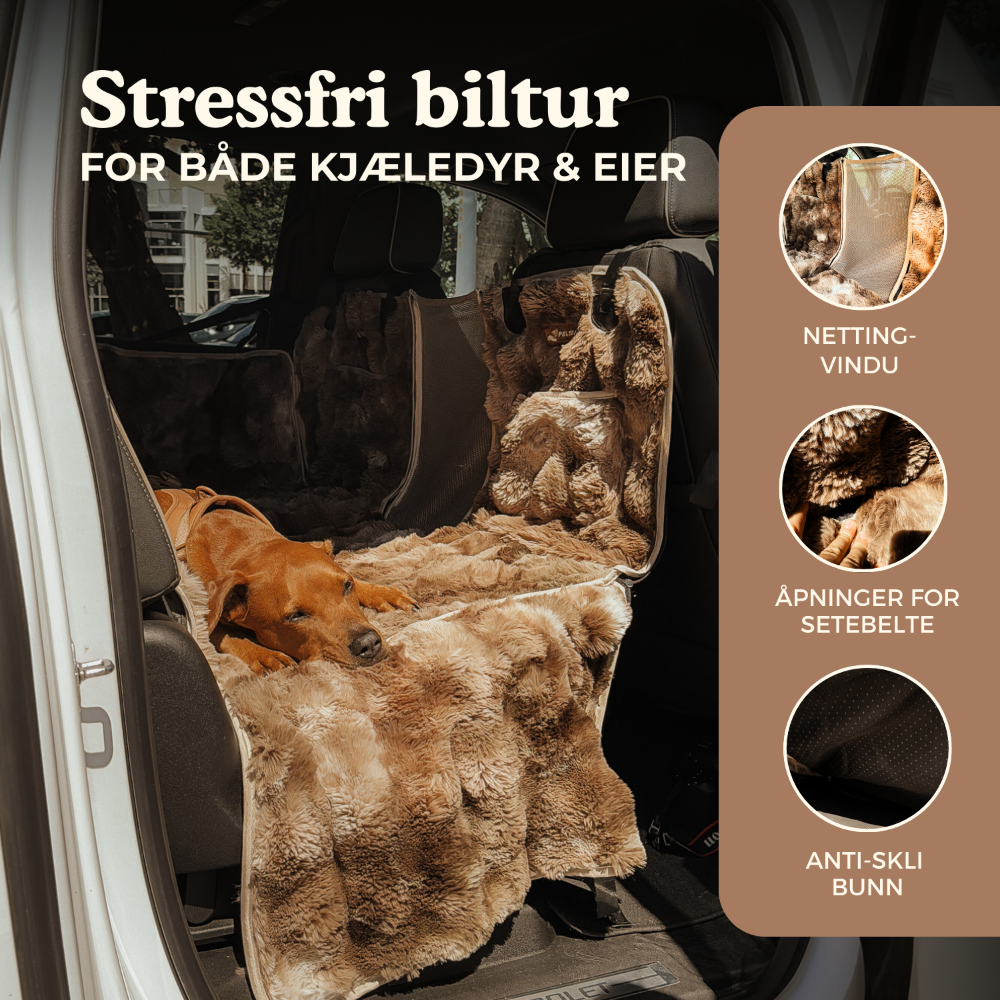 Vårt Premium Baksetetrekk kombinerer en supermyk, fløyelsaktig fuskepels overflate med moderne design og praktiske funksjoner som innebygde lommer til oppbevaring av tilbehør.